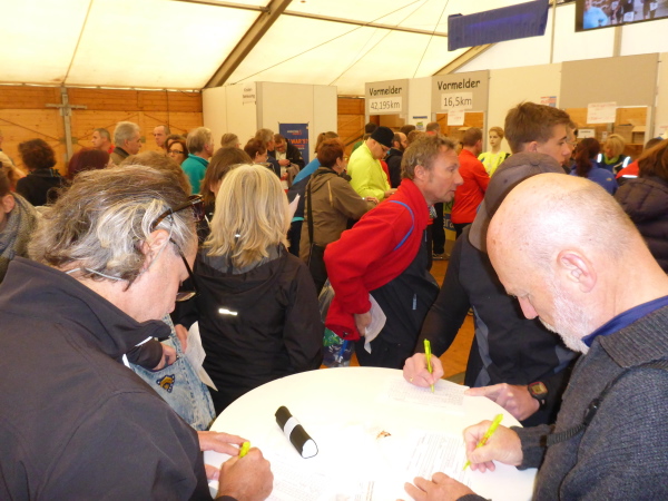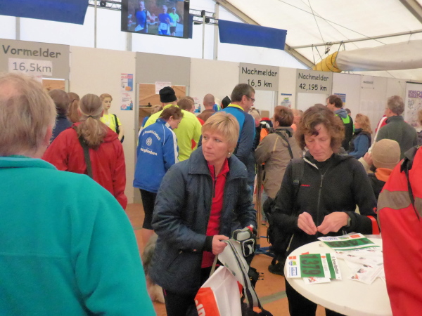 Bei unserer Ankunft am Samstagnachmittag ist das Zelt brechend voll. Gerade läuft die Siegerehrung für die Mountainbiker und dreckverschmierte, aber glückliche Biker haben eindeutig die Oberhand. Schnell holen wir unsere Startnummern und überlassen den Zweirad-Kollegen das Feld. Das Startgeld ist sympathisch niedrig. Man erhält eine Startertasche mit diversen Kleinigkeiten und einem großen Rucksack. Dafür wird für die Finisher-Medaille ein kleiner Obolus verlangt. Das finde ich perfekt. Wer eine Erinnerung möchte, kann sie erwerben. Alle anderen haben dafür ein günstiges Startgeld.