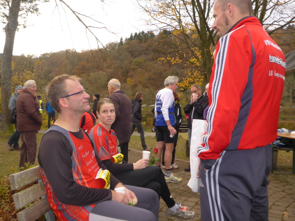 Der Rursee-Marathon ist ein wunderbarer Landschaftslauf mit allem was dazu gehört. Auf Zuschauer kann man bei so einer tollen Gegend leicht verzichten. Bei Regen könnte die Strecke teilweise unwegsam werden, was aber für November nicht ungewöhnlich wäre und mit Trailschuhen kein Problem sein dürfte. Die Verpflegung ist mit Banane und Apfel, Wasser, Iso, Tee und später Cola gut, und ist trotz zahlreicher Nachmelder und unerwarteter Wärme bis zum Schluss mehr als ausreichend vorhanden. Schokolade und Bier werten das ganze natürlich nochmals auf. Die Helfer sind super nett und machen den Eindruck eines eingespielten Teams. Ein Streckenposten hinter der Schwammenauel-Sperre wäre vielleicht ganz gut. Wir uns sehr wohl gefühlt und werden selbstverständlich wiederkommen.