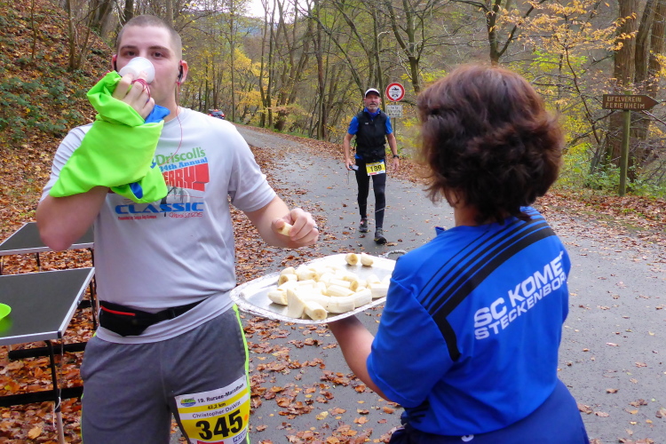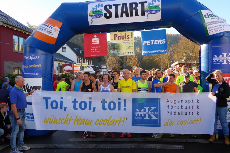 Als es diesen Marathon noch nicht gab, war noch eines drin. Doch zur Unterscheidung zum Fluss im Ruhrgebiet, liess man das „h“ in der Rur weg. Nur die Einwohner des Startortes Einruhr bestanden auf ihr „h“, weil sie sich keine neuen Briefköpfe zulegen wollten. „Ruhr“ ist altgermanisch und bedeutet „ sich schnell bewegen“. Daher auch der Ausdruck „sich rühren“. Das passt also voll auf diesen Marathon!