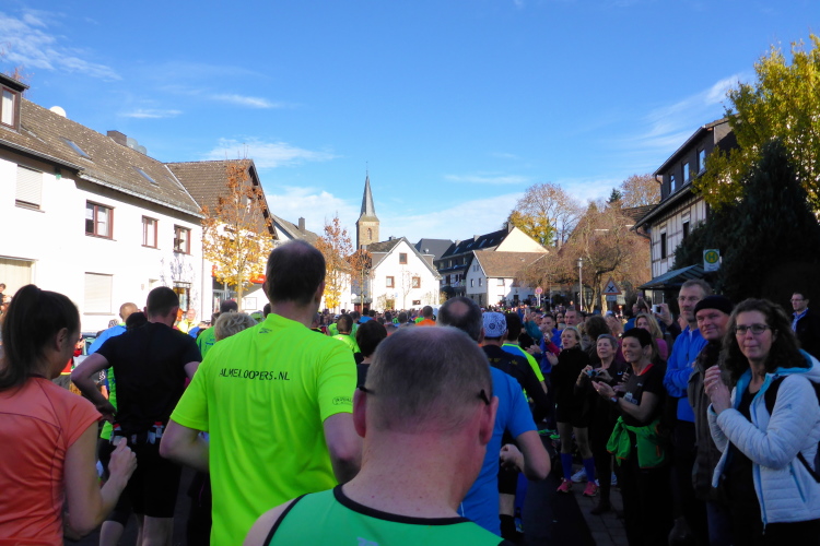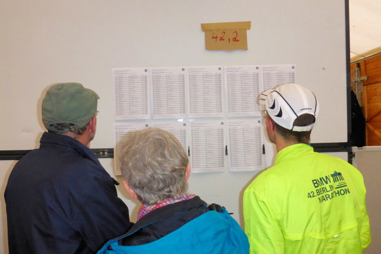 Um einen Parkplatz zu finden, reicht es auf dem Boden zu bleiben. Es wird innovativ geparkt, da wird heute kein Stress gemacht. Die Startnummern gibt es im unübersehbaren Festzelt, direkt an der Rur gelegen. Kaffee und Frühstücksbuffet sind von der besseren Sorte. Im Starterbeutel liegt ein neuartiges Imprägniermittel für Funktionsjacken, vielleicht mal eines, das funktioniert. Und es gibt noch ein Shirt, der Jahreszeit entsprechend mit langem Arm, dazu noch Magnesium-Kalium Tabletten. Der Winter kann kommen.