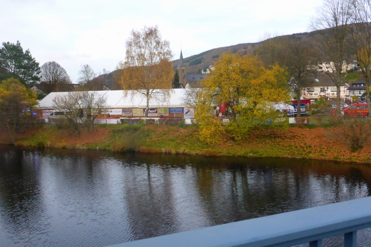 In Woffelsbach (km 31) geht es erst steil nach unten und ab der Dorfmitte steil nach oben. Wie die meisten Dörfer hier wurde auch Woffelsbach zweimal umgesiedelt. 1938 mit der ersten Flutung, 1955 mit der Erhöhung des Dammes und zwischendurch gab es noch den Krieg. Jetzt lebt man von den Campinggästen, die sich teilweise das ganze Jahr über hier aufhalten.