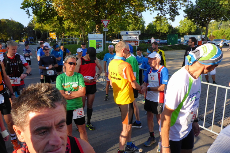 Die Startnummern gibt es am Sonntag ab 7 Uhr in der Stadthalle, kein Andrang, Frühstück wird angeboten. Die Buden für die Zeit nach dem Lauf werden aufgebaut. Es wird Bier, Würstchen und Flammkuchen geben. An den Verpflegungstischen, die alle fünf Kilometer aufgestellt sind, wird es Wasser, Cola, Honigkuchen, Melone, Salzgurken und einiges mehr geben.