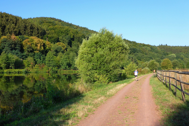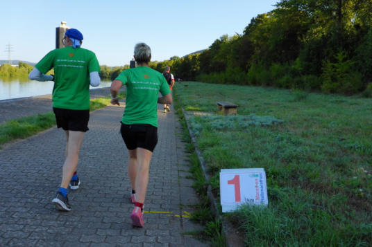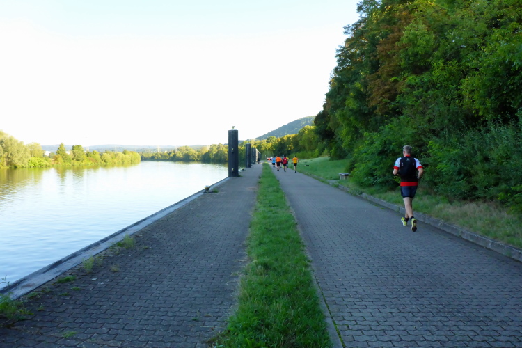 Die Strecke führt ausschließlich durch Natur, auch wenn die Uferwege asphaltiert und geschottert sind. Bis zur Mündung der Saar in die Mosel laufen wir nicht, unser Laufrevier ist die Saarschleife. Einmal am inneren Ufer, einmal am äußeren Ufer, das ergibt 42,2 Kilometer, amtlich vermessen.