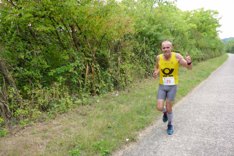 Auch wenn ich sechs Minuten langsamer bin als letztes Jahr, bin ich bin froh, dass es diesen schnellen Naturlauf ohne Traileinlagen gibt. Ein Trail ist oft genug Freund des Schweinehundes und schreit nach Gehpausen. Eine Marathonstrecke schreit nach neuer Bestzeit.