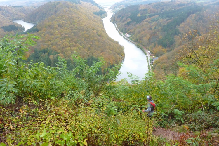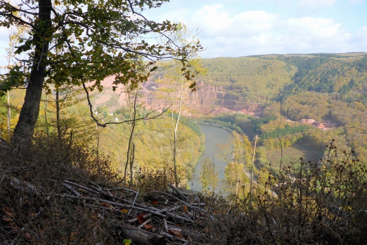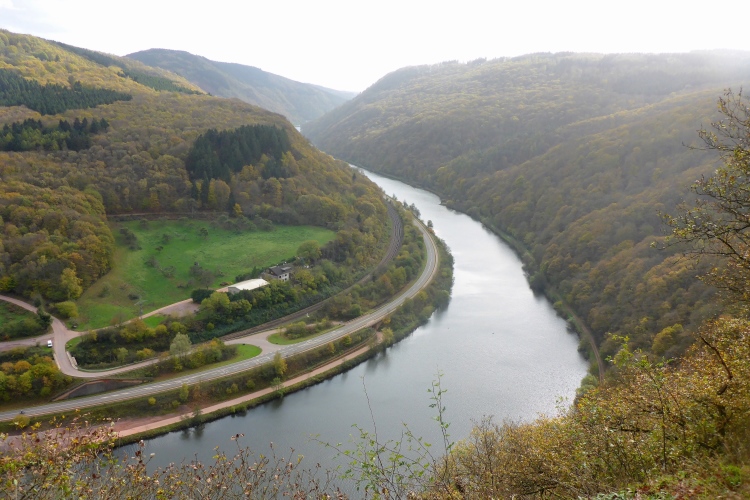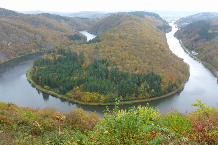 Vom Aussichtspunkt Cloef genieße ich den grandiosen Blick auf die Saarschleife. Im Laufe der Jahrmillionen hat sich die Saar tief in das Gestein gegraben und eine optisch perfekte, zehn Kilometer lange Schleife gebildet. Der Blick von oben zur 180 m tiefer fließenden Saar ist schon alleine die Reise wert.
