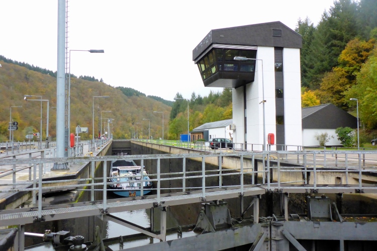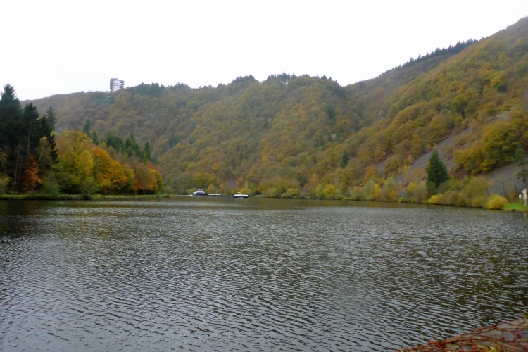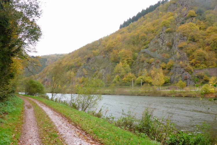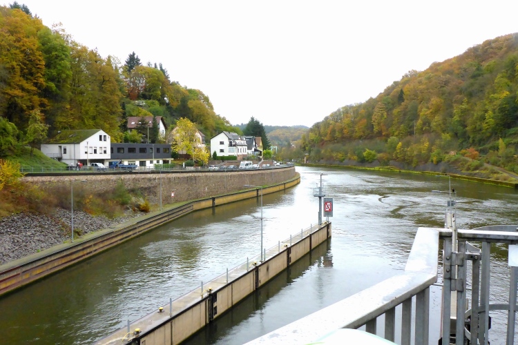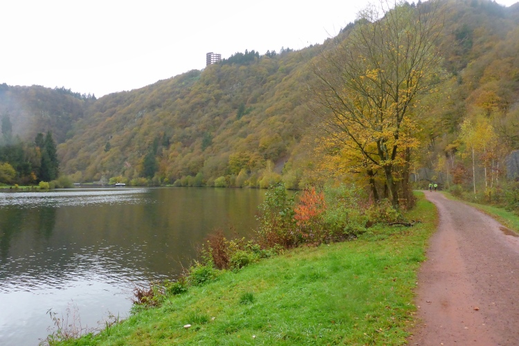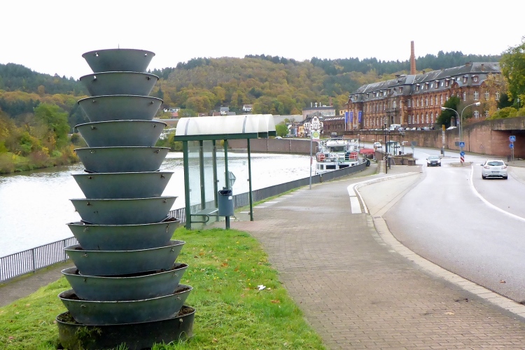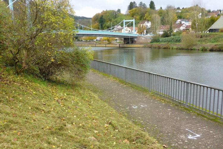 Von den historischen Bauten in Mettlach sehen wir nichts, da die neue Strecke uns gleich am Ortseingang über die Brücke führt. Nur aus der Ferne sehen wir den großen Barockbau einer ehemaligen Benediktinerabtei, in dem heute die Keramikfirma Villeroy & Boch ihren Sitz hat.