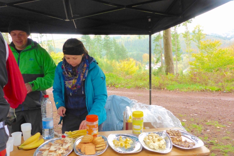 In der Ausschreibung steht, dass man hier das Rennen beenden kann, mit 43 km in einer separaten Liste gewertet und von einem Bus zum Ziel gebracht wird. Durch die aktuelle Streckenkürzung sind es nur etwa 39 km. Die Verpflegungsstellen bieten für jeden Geschmack etwas, auch Cola und vor allem gute, warme Suppe.