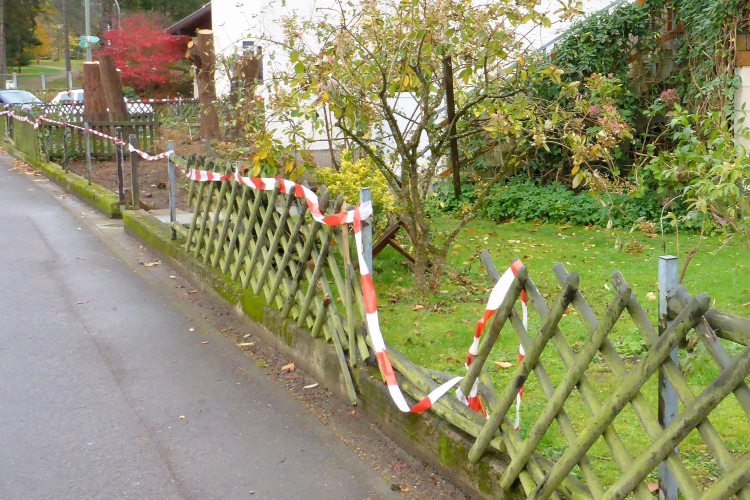 Am Ortsrand sieht man noch schwere Schäden, die kürzlich ein Sturm verursacht hat. An einem Waldhang hat er alle Bäume gefällt, ebenso in Parks und privaten Gärten. Zerstörte Zäune sieht man fast überall.