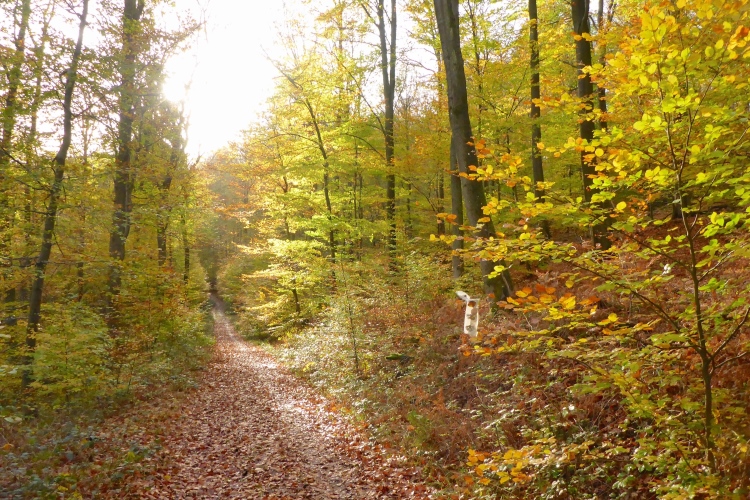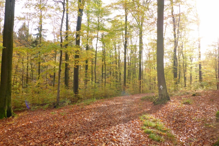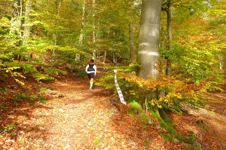 Der herrliche Sonnenschein lässt das Herbstlaub jetzt wunderbar leuchten. Welch ein herrlicher Trail-Tag! Etwas fällt mir inzwischen auch sehr positiv auf: Ich habe heute keine einzige Gel-Packung auf dem Weg liegen gesehen. Offenbar kapieren immer mehr Läufer, dass sie ihren Müll mitnehmen sollen.