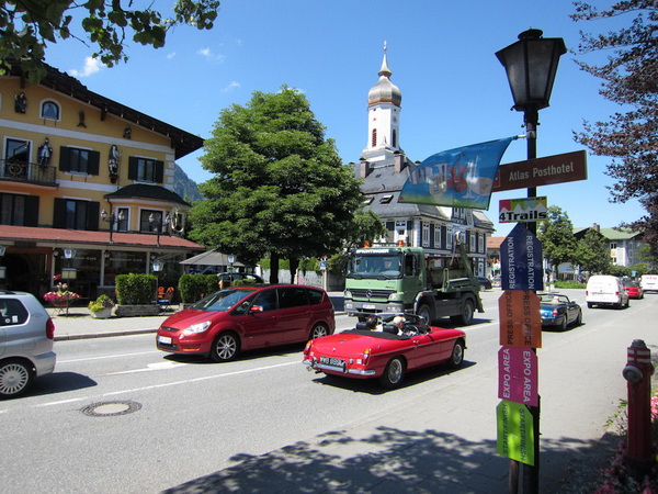 Übrigens, hier sieht man auch Männer in Tracht durch den Ort laufen mit Grün-Weiß gestrickten oder Grün-Grau gestrickten Wadenstrümpfen. Die einen tragen geringelte, die anderen tragen Rautenmuster am Bein. Wie wir erfahren, erkennt man an den Strümpfen, ob der Herr in Tracht von Garmisch oder von Partenkirchen stammt und ob er zu einem Fest (Rautenmuster) oder zur Arbeit (geringelt) geht. Erst seit den Olympischen Spielen 1936 wurden die Gemeinden Garmisch und Partenkirchen zusammengeschlossen. Früher hätte kein Partenkirchener eine Frau aus Garmisch geheiratet. Oder wie bei uns zu Hause kein Frankfurter eine Frau aus Offenbach oder Mainz keine aus Wiesbaden oder Köln niemanden aus Düsseldorf…