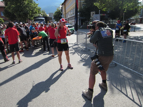 Das Rennen hat noch nicht angefangen, der Puls ist bereits jetzt schon auf fast 100 Schläge pro Minute. Die internationale Trailrrunning-Elite gibt sich bei der Premiere der SALOMON 4 TRAILS die Ehre. Die Siegerin des Zugspitz Ultratrail 2011 und Siegerin des Ultratrail Serra de Tramuntana 2010, Julia Böttger, ist am Start. Daneben auch Anna Frost aus Neuseeland, Tom Owens, der zweimalige Sieger des Transalpine-Run aus Schottland, Christian Stork und der 19-Jährige Philipp Reiter. Die Leute applaudieren.