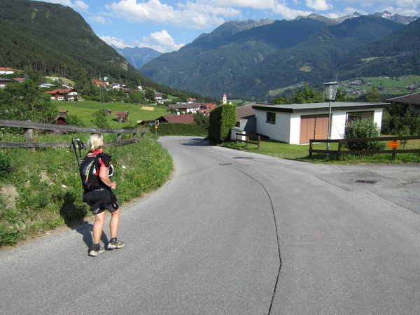 Ein paar Wanderer blicken hoch, winken, rufen uns etwas kaum Verständliches zu. Die Sonne knallt auf den Hang, ich habe die letzten Kilometer hart gearbeitet, ich bin verschwitzt, ich möchte rennen, aber es geht nicht mehr. Je langsamer ich werde, desto größer wird der Rückstand sein. Der Mann mit dem Hammer müsste mir aus humanitären Gründen einen Schlag versetzten.