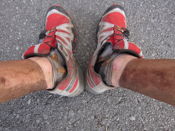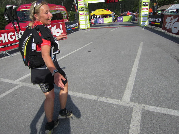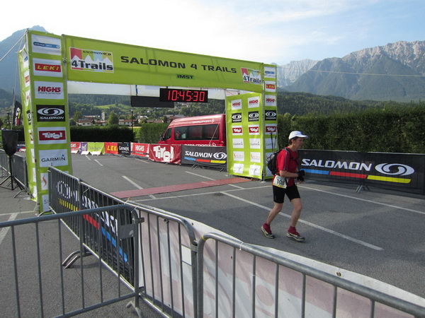 Wir laufen und laufen bis zum tiefsten Punkt der Salomon 4Trails in Imst (780 m). Nein, alles bloß nicht das! Selbst 100 m vor dem Ziel noch ein heftiger letzter Aufstieg. Keine Energie mehr. Die Uhr am Arm geht ihren eigenen Weg. Wir hören den Kommentator, wir sehen das Ziel-Tor. Nach 10:44:42 Std. also genau 18 Sekunden vor dem offiziellen Zielschluss haben wir auch diese Etappe geschafft!