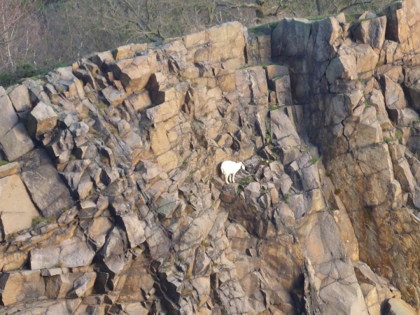 Als ich wieder den großen Steinbruch erreiche, sehe ich ein Schaf, das bewegungslos mitten in der Felswand steht. Hierher zu kommen, wäre selbst einer Gams schwer gefallen. Das Schaf muss abgestürzt sein und steht da wie falsch eingeparkt. Nur ein Hubschrauber wird es retten können.