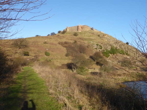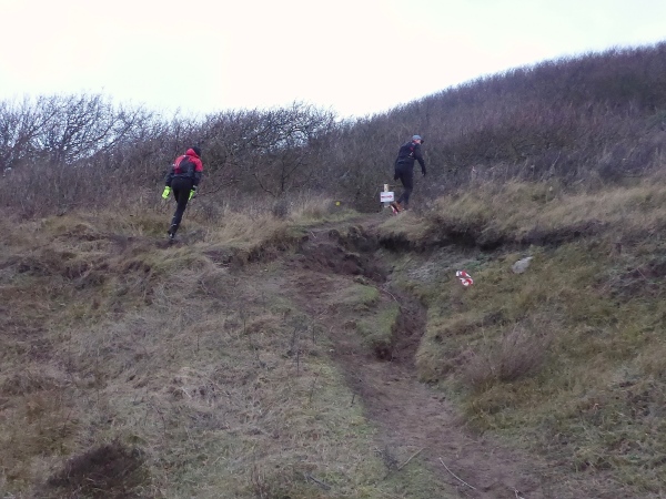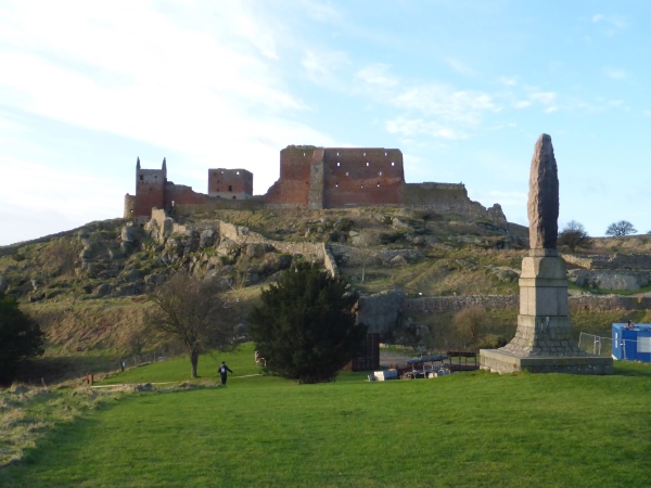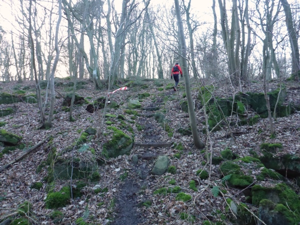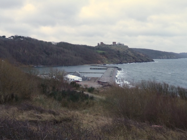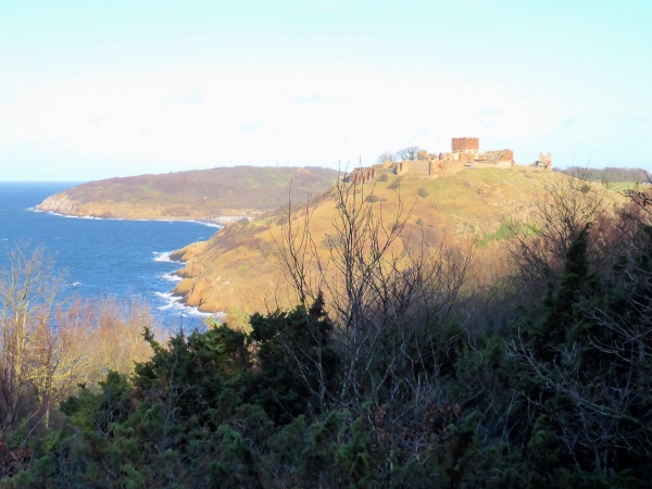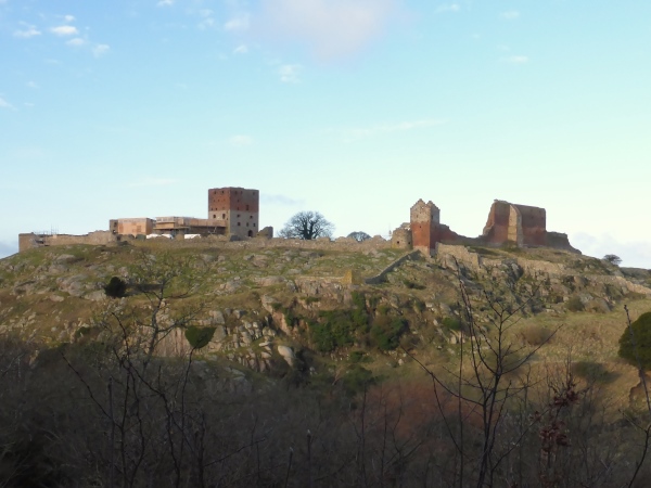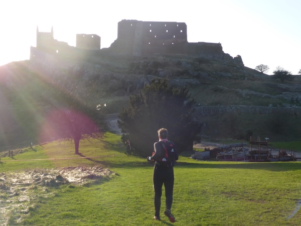 Dann erreichen wir wieder Hammerhavn, wo wir aber nicht zur VP laufen sondern etwas oberhalb der Zieleinlauf-Strecke gleich wieder bergauf steigen. Es geht auf die Anfang des 13. Jahrhundert erbaute Burg Hammershus zu, die heute Nordeuropas größte Burgruine ist. Kurz vor der Burg geht es links bergab.