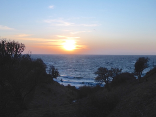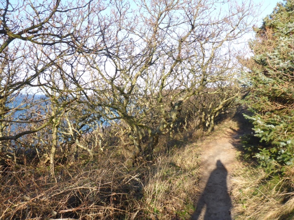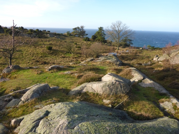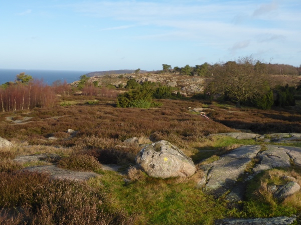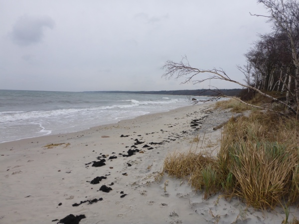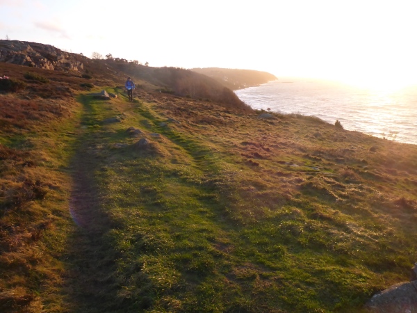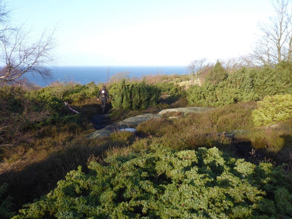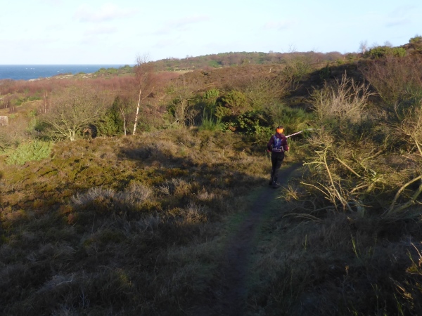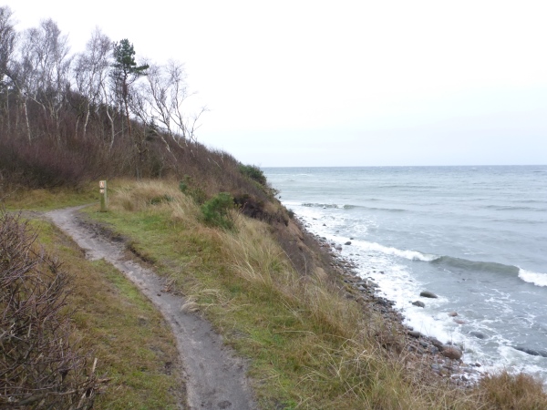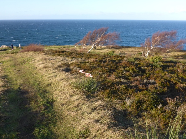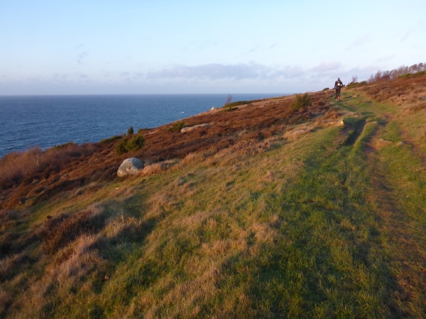 Die Strecke bietet viel Abwechslung. Trails oberhalb der Steilküste, urwüchsige Wälder, idyllische Abschnitte, Äcker und Wiesen, sonnige Heideflächen mit Birken und Wacholder – die Mischung gefällt mir außerordentlich gut.
