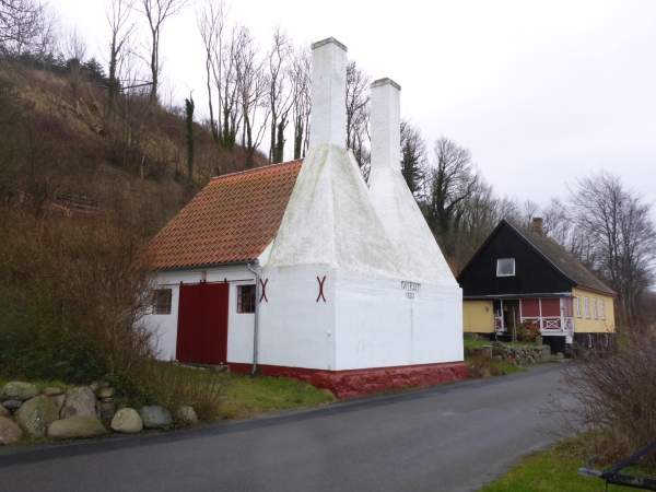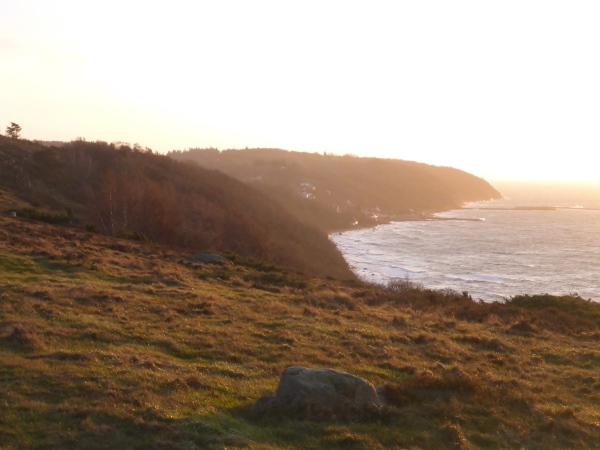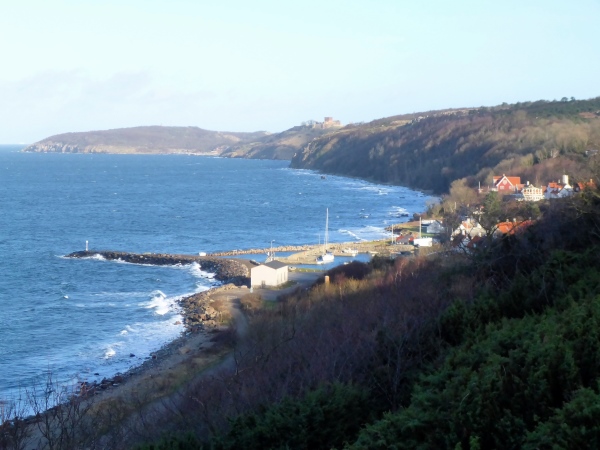 Bald geht es wieder durch Vang, dieses Mal unten am Hafen mit seinen Heringsräuchereien vorbei. Kein Mensch ist zu sehen. Hier ist im Winter "tote Hose". Man kann es auch mit "herrliche Ruhe" umschreiben. Es folgt wieder die Mischung aus Kiesstrand, Küstentrail und groben Steinen, dann darf ich mich wieder am langen Seil hinaufhangeln.