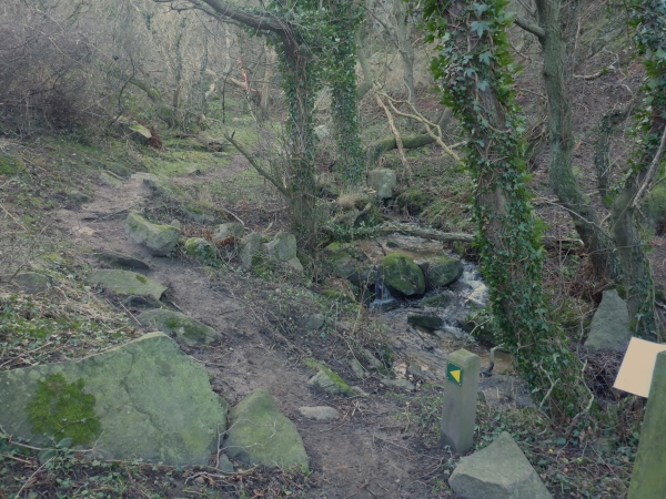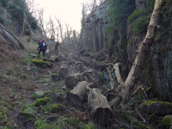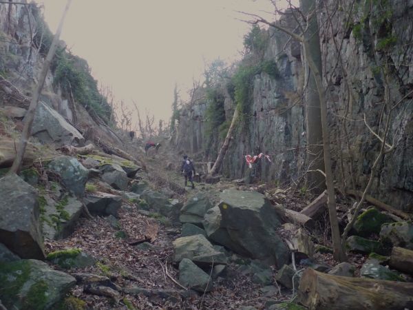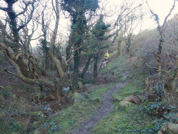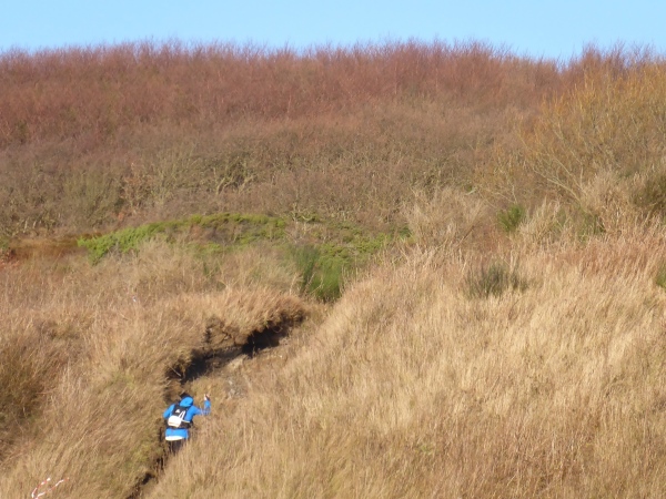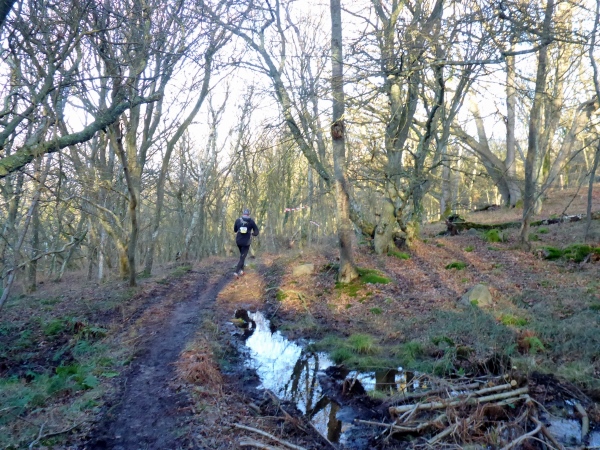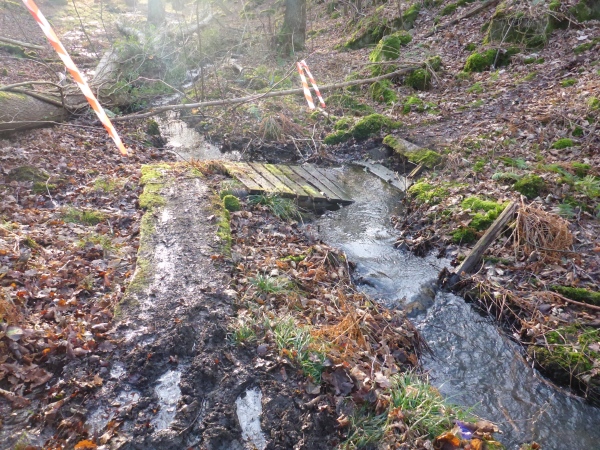 Eine Weile waren die Trails recht gut laufbar, nun durchqueren wir eine kleine Schlucht, in der es auf jeden Fall nasse Socken gibt. Dann geht es schnell und erholsam auf breitem Weg weiter, bis die nächsten Trails auf uns warten.
