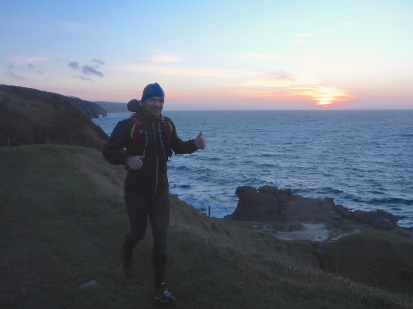 Nun folgt der schönste Streckenabschnitt. Wir laufen oberhalb der Steilküste auf hübschen, meist nicht besonders schweren Trails und genießen den Blick auf das Meer. Vor allem bei der zweiten und dritten Runde genieße ich diesen wunderschönen Trail. Noch immer ist es nicht richtig hell, aber bald wird die Sonne aufgehen, allerdings auf der anderen Seite der Insel, so dass ich noch eine Weile auf gutes Licht zum Fotografieren warten muss.