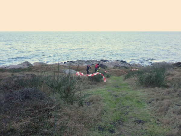 Zum zweiten Mal steige ich nun den steilen Trail hinauf. Bei Tageslicht wirkt er nicht so schlimm wie vor drei Stunden. Weiter oben biegen wir nun nach links zum Leuchtturm ab. Durch herrliche Heidelandschaft geht es auf Trails hinab zum Meer. Ich fühle mich wie im Urlaub und nicht in einem Wettkampf. Ein Stück laufen wir auf herrlichen Pfaden entlang der Küste, dann steigen wir wieder zum Leuchtturm hinauf. Vorbei an Schafen laufen wir erneut durch herrliche Heidelandschaft.