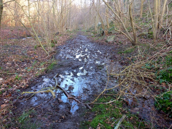 Zwischendurch gibt es immer mal wieder sehr schlammige Passagen, auf denen die Soße in die Schuhe läuft. Ihr wisst ja, dass ich Schlamm liebe und daher mit Begeisterung durch den Matsch stapfe. Schon als Kind zogen mich Wasserpfützen magisch an. Als Trailrunner werde ich heute sehr gut bedient. Asphalt gibt es kaum.