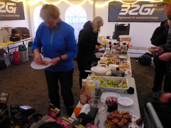 Von 35 gestarteten Ultras schaffen 30 die gesamte Distanz. Im Zelt ist das Verpflegungsangebot nun recht vielseitig. Ich treffe zwei der drei Läufer, mit denen ich heute Morgen hier her gefahren bin. Ich denke noch, sie bereiten sich auf letzte Runde vor. Dann erfahre ich, dass sie für sie „finish“ ist und einer den 2., der andere den 4. Platz belegt. Gratulation und gut für mich, denn sie nehmen mich wieder mit und 20 Minuten später bin ich bereits im warmen Hotelzimmer.
