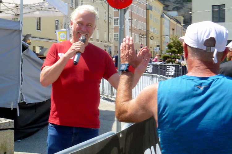 Wir reisen mit der Bahn an und sind nach einem Zwischenstopp in München (Parkrun im Westpark) am Nachmittag in Salzburg. Nach dem Einchecken im Hotel geht es den Volksgarten, wo bereits in der Eisarena die Startnummern ausgegeben werden. Eine kleine Läufermesse ist auch eingerichtet, wer noch etwas kaufen will, der kann sicher noch das eine oder andere Schnäppchen machen. Im Starterbeutel gibt ein wenig Werbung, ein Getränk und natürlich die Startnummer (Chip auf der Rückseite). Die Helfer wünschen uns noch gutes Gelingen. Nach einem „Umherstreunern“ auf der Messe und im Volksgarten, wo gerade die Jugendläufe stattfinden, treffen wir uns mit Bodo und Ute zum Abendessen und schmieden heiße Pläne für den folgenden Tag. Sprichwörtlich, denn Petrus wird uns gewaltig einheizen.