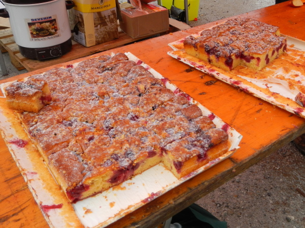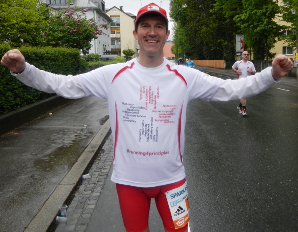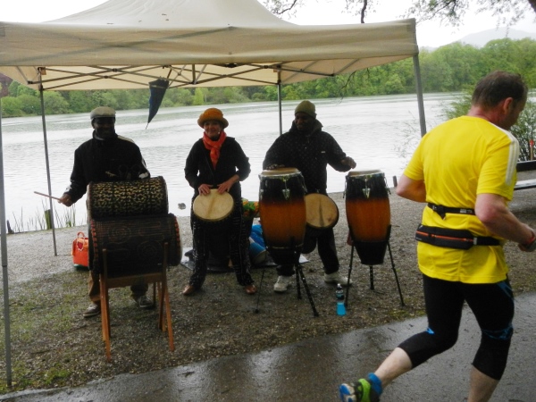 Mit einer edlen Medaille geschmückt tue ich mich an einem Stück Kuchen gütlich und löse dann den Gutschein für eine Sport Weiße ein. In einem der Zelte neben der Kleidersack-Aufbewahrung kann ich die nassen Oberteile gegen trockene Kleidung austauschen und dann gemütlich zum Hotel zurück schlendern. Dabei gehe ich den Läufern entgegen, welche näher am Zeitlimit sind, und versuche sie anzufeuern.
