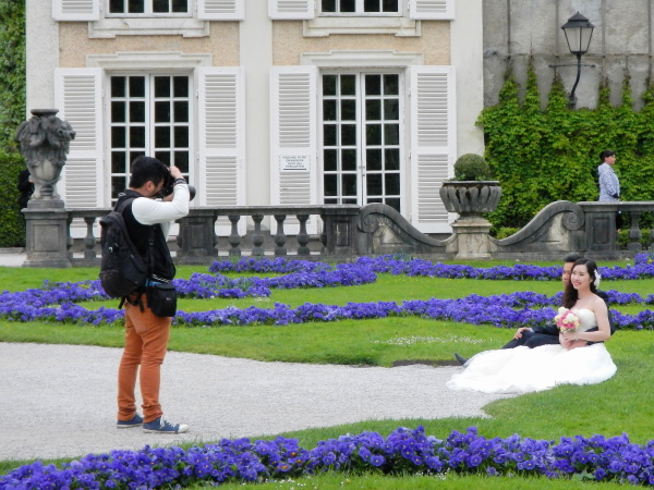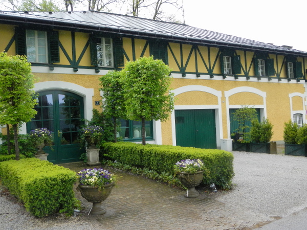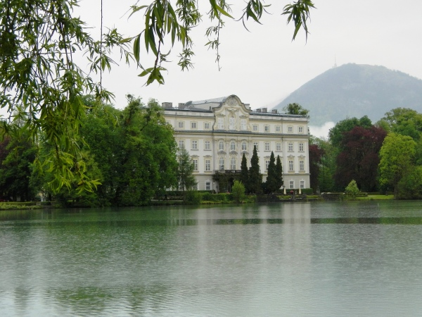 Wir biegen ein auf die Hellbruner Allee, welche, der Name sagt es, als lange Gerade in den Süden zum Schloss Hellbrunn hinführt. Wer meine Berichte kennt, weiß, dass lange Geraden meines Kopfes Sache nicht sind. Ausnahmen bestätigen die Regel. Wenn es links und rechts Schlösser hat wie Baumstämme auf einem Hundespaziergang, ist es natürlich etwas ganz anderes. Wenn ich die Übertreibungen weglasse komme ich in meiner Zählung immerhin auf zwei großzügig dimensionierte Edelbauten. Zuerst auf der linken Seite das Schloss Fronburg. Wetten, dass mehr Amerikaner das kennen als Europäer? Im Film “The Sound of Music“ stellt das Schloss die Außen Ansicht der Villa der Familie von Trapp dar. Auch ich bin ein solcher (geografischer) Europäer. Vor bald dreißig Jahren wunderte ich mich in einer Skiwoche mit amerikanischen Freunden in Österreich, was der Hype um „The Sound of Music“ sollte und musste mich unter anderem darüber aufklären lassen, dass dieser Film für jede zweite Nominierung einen Oscar einsackte.