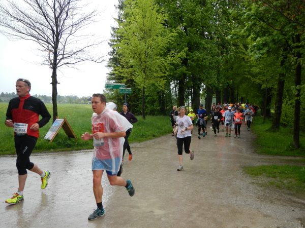 Die lange Gerade ist übrigens ein mentaler Klacks, wunderschön im und unter dem Grünen und heute weich zu belaufen. Der aufgeweichte Naturbelag macht nach dem Lauf eine doppelte Unterbodenwäsche notwendig.