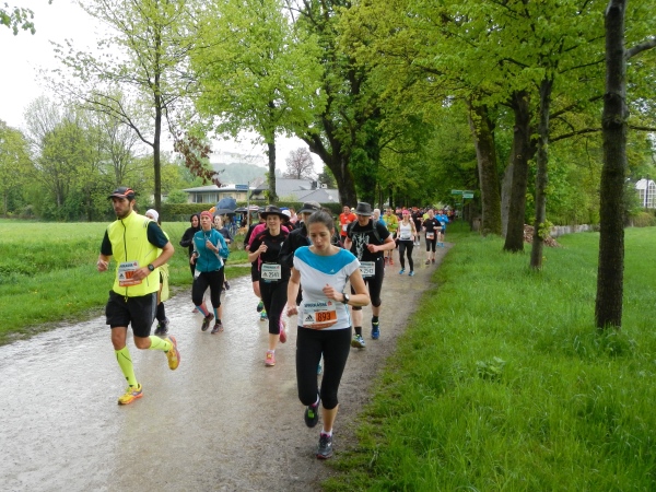 Der letzte Block wird zeitlich so auf die Strecke geschickt, dass von Beginn weg ein gutes wegkommen möglich ist. Es geht gleich nach links zur Salzach und dieser ein kurzes Stück entlang in Richtung Süden. Auf der Hellbrunner Straße dauert es nicht lange und wir laufen unter einem Blätterdach, vorbei an der NAWI.