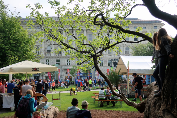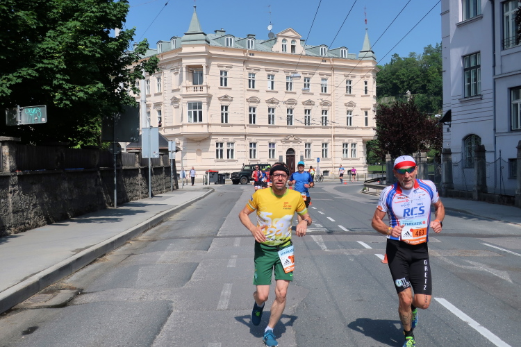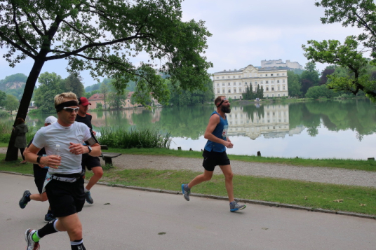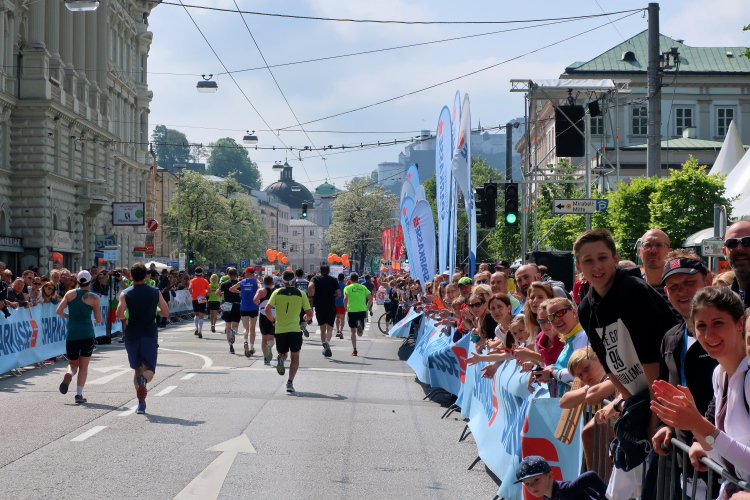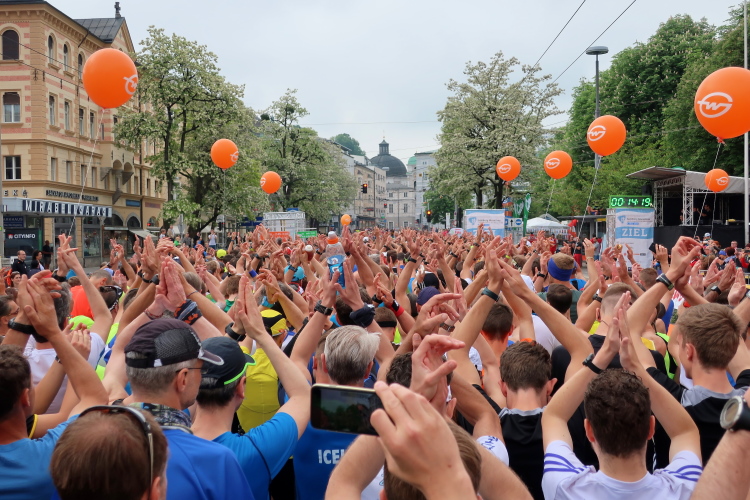 Mit der Finisher-Medaille dekoriert können wir uns im Zielbereich bei Kuchen und Stiegl-Bier stärken. Oder auch gleich im Park nebenan alle Viere von uns strecken. Schee war´s – ein abwechslungsreiches Laufspektakel geht zu Ende, nicht aber das Erlebnis in der Mozartstadt. Überall in der Altstadt sieht man sie noch: Medaillenbehängt in der Sonne sitzend, entspannt bei einem Drink oder einem Cappuccino das Finish und den herrlichen Frühsommertag genießend. Ein Genuss ist in Salzburg eben nicht nur der Marathon.