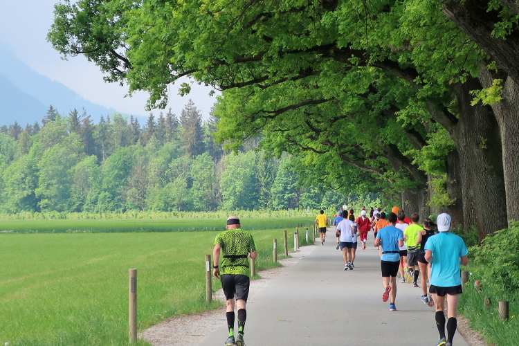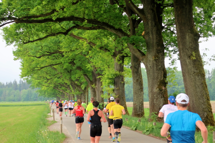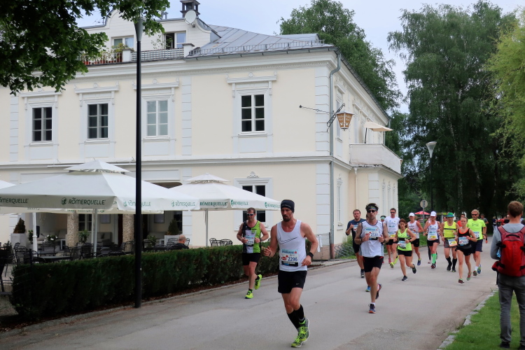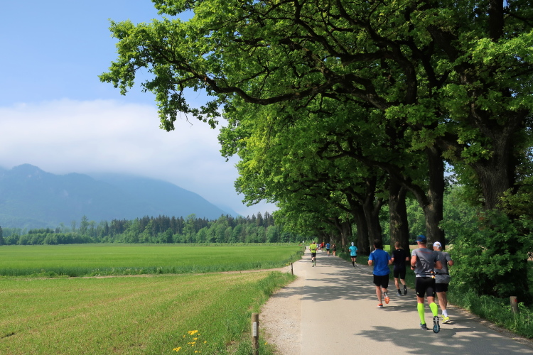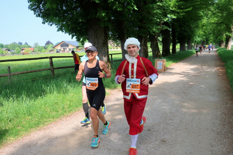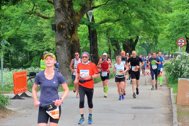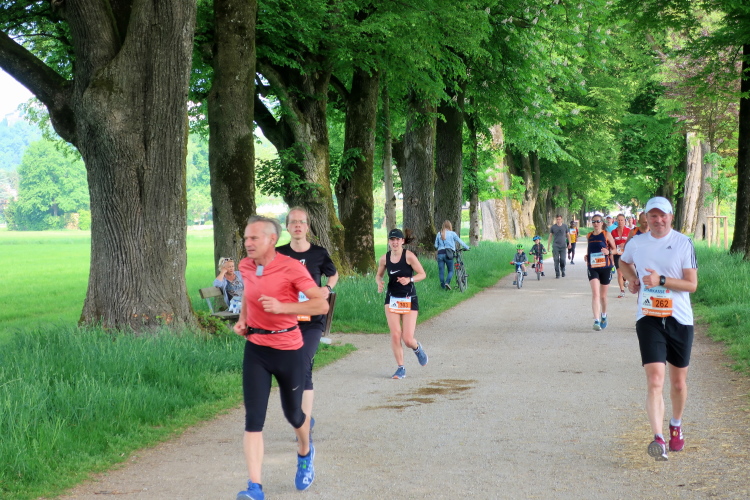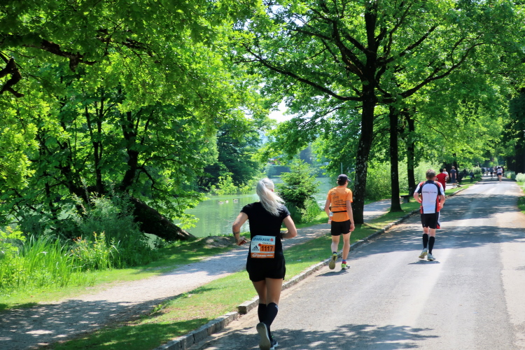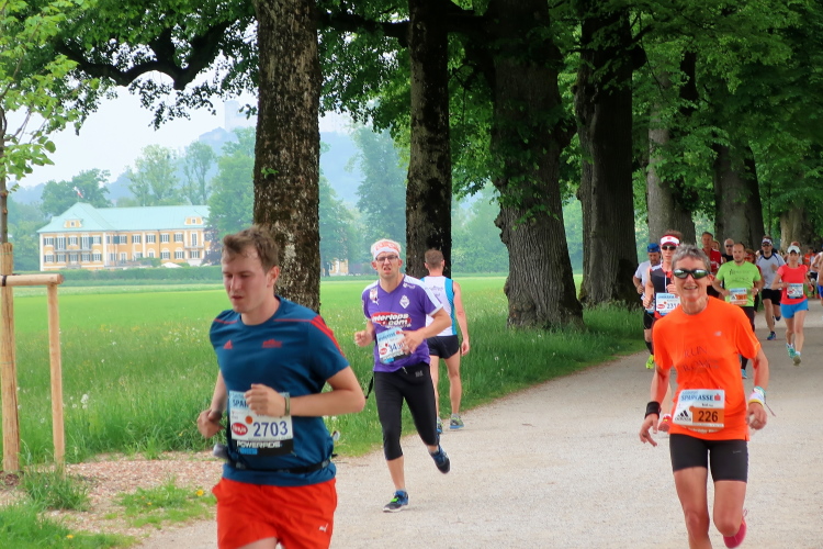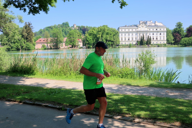 Gerade auf dem Streckenstück entlang der Hellbrunner Allee genieße ich die Ruhe und die entspannte Atmosphäre noch sehr viel mehr als auf der ersten Runde. Dieser wundervolle Abschnitt verträgt sich einfach nicht mit Menschenmassen. Statt dem Getrappel zahlloser Läuferfüße höre ich nun primär Vogelgezwitscher. Noch einmal erlebe ich Hellbrunn, Leopoldskron und die anderen Highlights des ersten Streckenteils. Vor allem die Kulisse rund um den Leopoldskroner Weiher gewinnt im Sonnenlicht nochmals deutlich an Zauber und Kraft.
