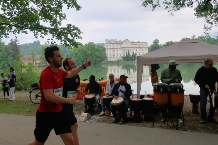 Vorbei an den Salzburger Landesklinken durchlaufen wir den langen, düsteren Tunnel der Gaswerkgasse. Dessen Querung beschert uns allerdings ein besonderes Klangerlebnis. Während uns entlang der Strecke neben Rhythmen von verschiedenen Trommlergruppen musikalisch eher gemütlich-beschauliches geboten wird, donnern hier tunnelwandverstärkt harte Beats aus den Boxen des Kollektivs Tanzbar. Wow – man merkt förmlich, die das die Läufer pusht.