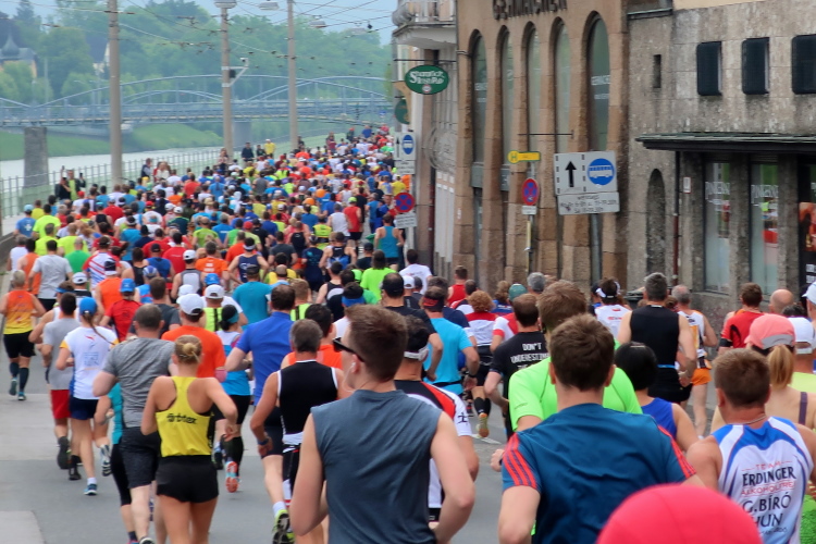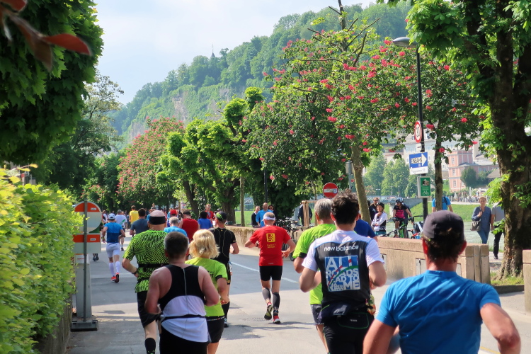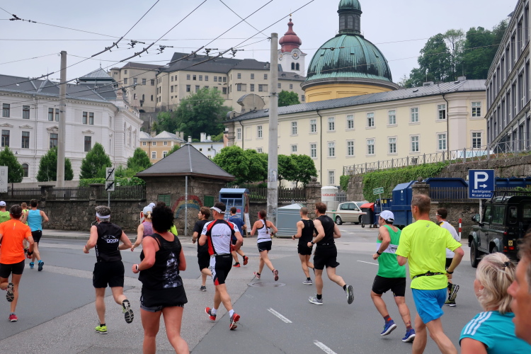 Kein Wunder ist also, dass Salzburg rund ums Jahr Opfer touristischer Heimsuchung ist. Eine spezielle Spezies Heimsuchender sind seit nunmehr 15 Jahren alljährlich im Frühling die der Lauftouristen. Wobei die Macher schon mit dem Slogan „Lauffestspiele in der Mozartstadt“ alles daran setzen, das Image zu nutzen und zu pflegen. Mit großem Erfolg: Etwa 7.000 Teilnehmer aus 80 Nationen sind alles in allem 2018 gemeldet, über 1.400 davon für den Marathon. Wie die Bezeichnung Festspiele schon andeutet, ist der Reigen der Laufangebote weit gespannt: Er reicht von 42,2 über 21,1, 10,5 bis 5,5 km, antreten kann man einzeln, als Team oder in der Staffel, auch Kinderläufe und selbst ein Inklusionslauf stehen im Angebot. Dazu: Ein Frühstückslauf und ein After Work Run als Genussveranstaltungen im Vorprogramm. Wer es darauf anlegt, kann nach dem Motto „Drei auf einen Streich“ drei Veranstaltungen in drei Tagen austesten.