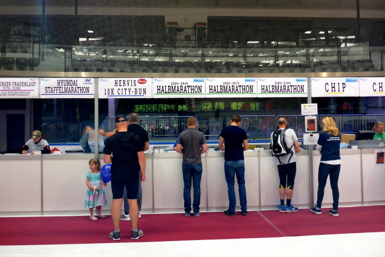 Ich schlenderte kurz durch die Sport Mall, bei der neben diversen Laufausrüstern natürlich auch der ein oder andere Laufveranstalter auf sich aufmerksam macht. Als ich meine Startnummer abholen will, zögere ich kurz. Wie gewohnt steuere ich den Marathon-Counter an. Aber diesmal ist man nebenan für mich zuständig - bei den Halbmarathonis. Ich bin nach langer Zeit mal wieder bei einem Halben gemeldet, um meinem Plan nicht zu durchkreuzen, in drei Wochen meinen 100. Marathon zu laufen. Schon etwas neidisch schiele ich zu den Marathonis hinüber. Mein Trost: Der Marathon wird in zwei identischen Runden gelaufen. Ich verpasse also nichts.