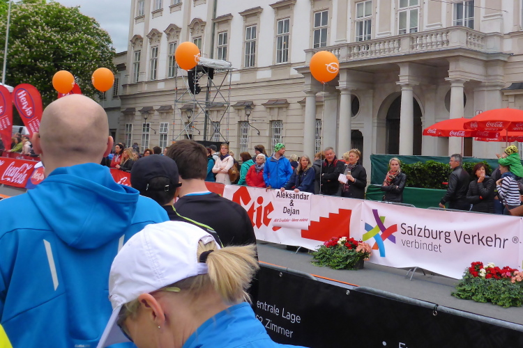 Start- und Zielgelände ist in diesem Jahr erstmals am Mirabellplatz direkt vor dem prächtigen Schloss Mirabell. 1606 baute, was damals ziemlich üblich war, Erzbischof von Raitenau außerhalb der Stadtmauern ein Domizil für seine Geliebte Salome und seine 15 Kinder. Die Liebe muss wohl groß gewesen sein, denn heraus kam ein stattliches Schloss mit großzügigem Garten. Während des dreißigjährigen Kriegs wurde das Gebäude umgebaut und in die Befestigungsanlage integriert. Nach dem großen Stadtbrand von 1818 musste das Schloss neu aufgebaut werden. Auf die beeindruckenden barocken Elemente wurde dabei weitgehend verzichtet. Bereits 1866 übernahm die Stadt Salzburg das Schloss zusammen mit dem Kapuzinerberg. Zwischen 1947 und 1950 residierten hier der Bürgermeisters und seine Stellvertreter. Der Marmorsaal, der ehemalige Festsaal, ist heutzutage ein begehrter Platz für Trauungen.