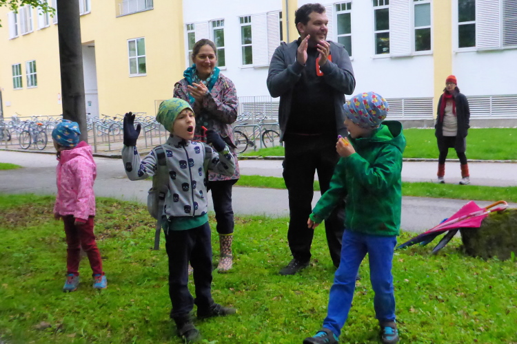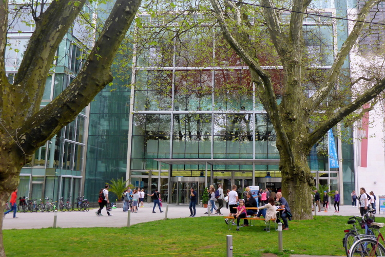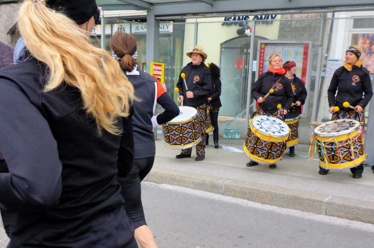 Unter dem Applaus der vielen Zuschauer geht es zunächst am Mozarteum vorbei. Das Mozarteum umfasst drei Teilbereiche; zum einen ist es die Universität, dann der Konzertbetrieb und dann, nicht minder wichtig und bekannt, das Orchester. An der Universität kann man aus den Bereichen Musik, Darstellende und Bildende Kunst so ziemlich alles studieren, was es gibt. Viele international bekannte Künstler und Pädagogen geben hier ihr Wissen und ihre Kunst weiter.