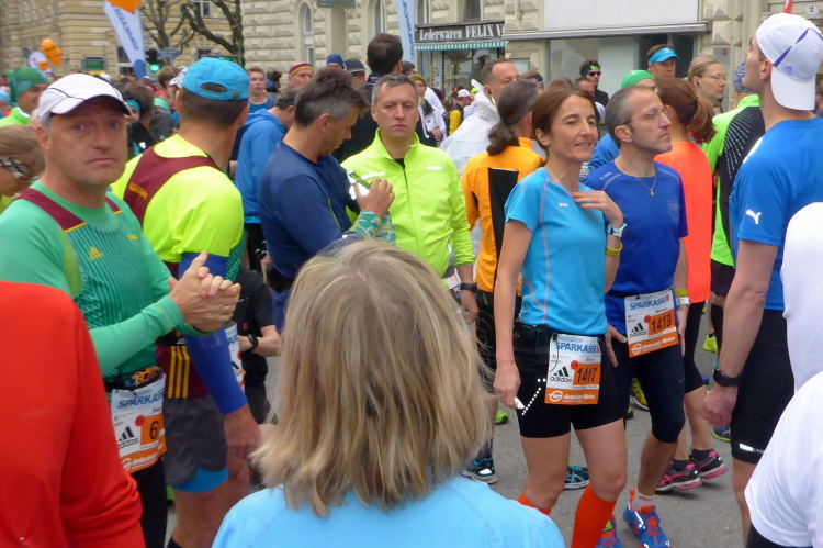 Es empfiehlt sich tatsächlich spätestens am Samstag anzureisen. Sonntags ist die halbe Innenstadt gesperrt und ein Durchkommen äußerst schwierig. Außerdem kann man sich am Vortag bereits in aller Ruhe mit den Örtlichkeiten vertraut machen. Ferner ist der Start für den 10er am Sonntag um 8.45 Uhr und für Halb- und Marathon um 9 Uhr. Da bleibt für Organisatorisches wenig Spielraum.