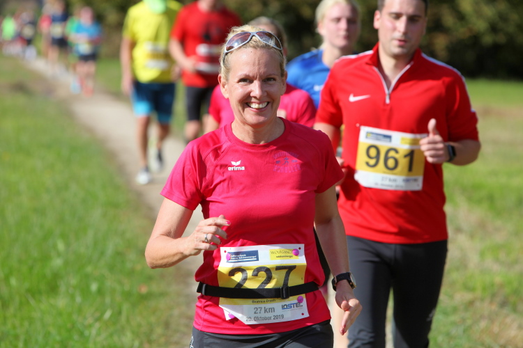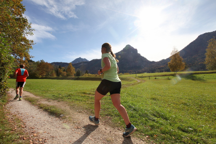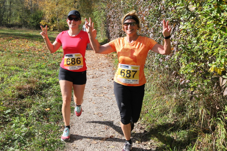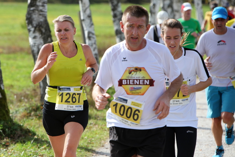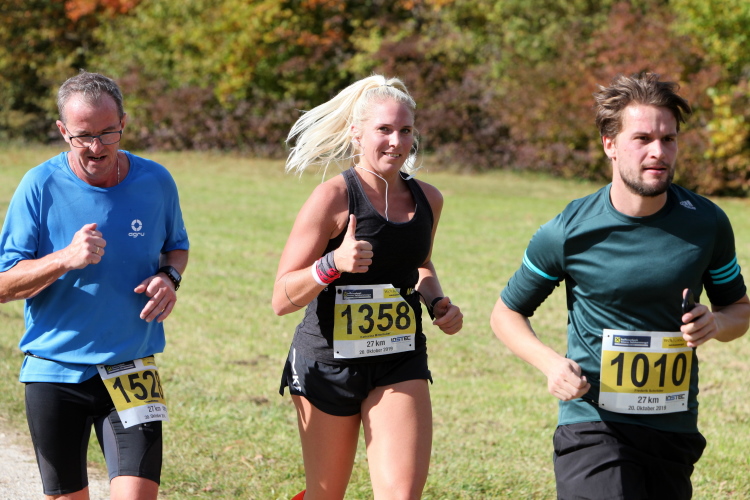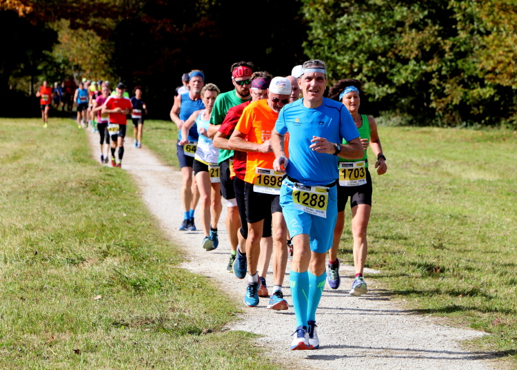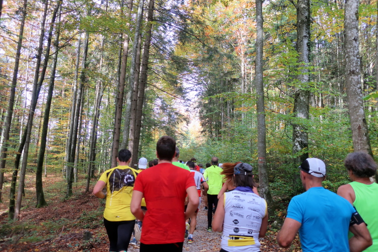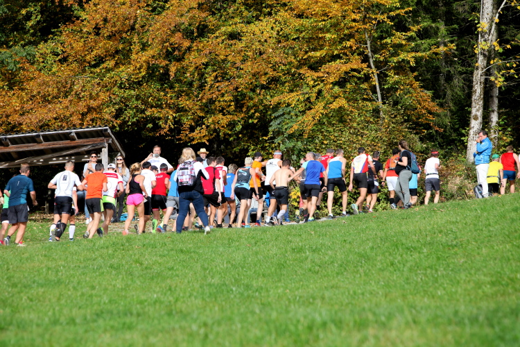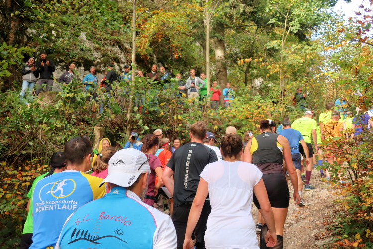 Allzu viele Blicke für die Umgebung sollte man allerdings nicht riskieren. Konzentration ist nun angesagt, denn steiler als es zuvor bergan ging, geht es nun durch den Wald hinab in die Tiefe. Hier zeigt sich, in wessen Brust ein wahres Bergläuferherz schlägt. Während die einen in vollem Lauf hinab preschen, tasten sich andere über Laub und Geröll fast schon übervorsichtig nach unten.