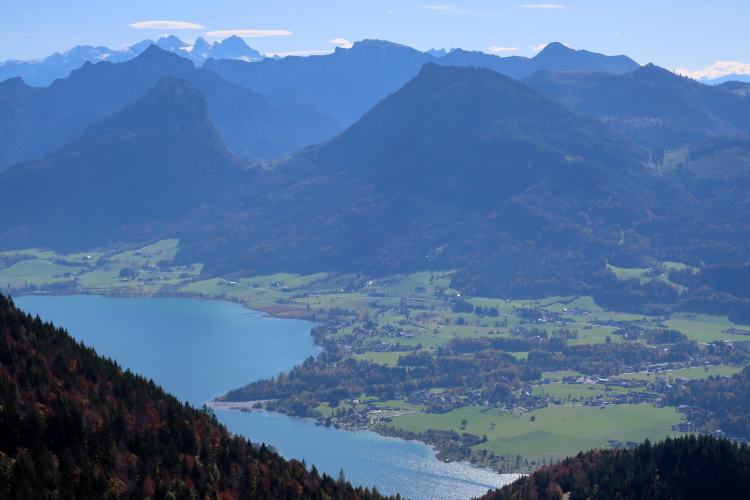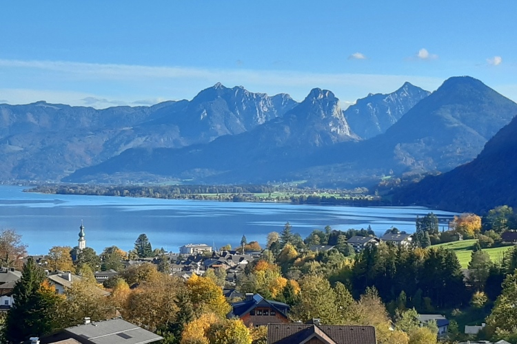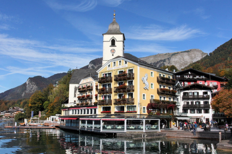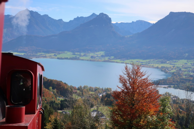 An den pittoresken Häusern des Ortszentrums und am Kongresshaus vorbei habe ich schon bald wieder Blickkontakt zum See. Zur Rechten passieren wir die Talstation der Schafbergbahn, bei der allein schon die Fahrt mit einer dampflokbetriebenen Zahnradbahn hinauf auf den 1.783 m hohen Schafberg besonderen Erlebniswert hat. Und einmalig ist auch der Blick von oben auf den See und die umliegende Bergwelt.