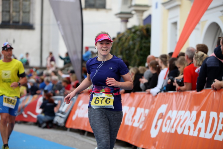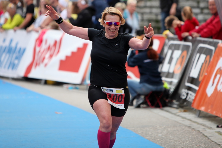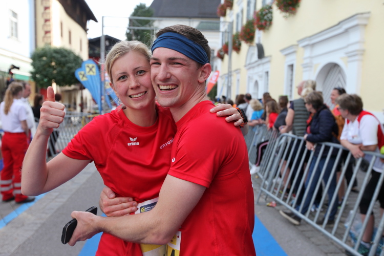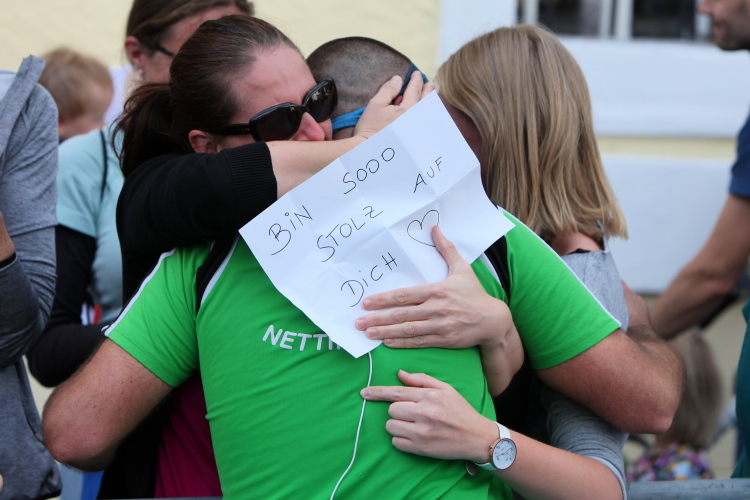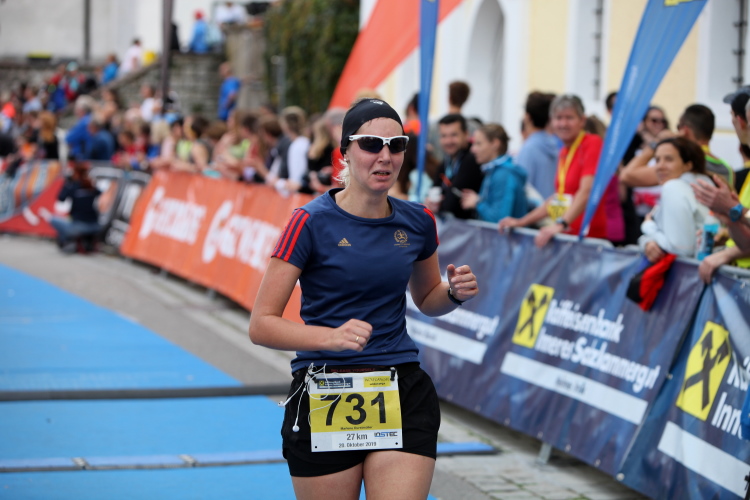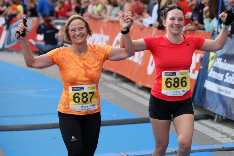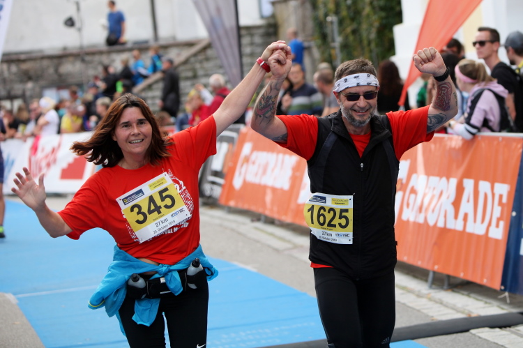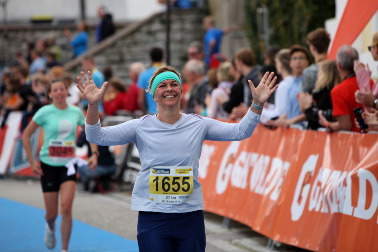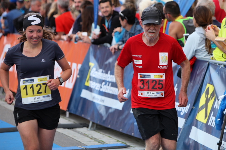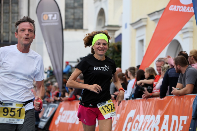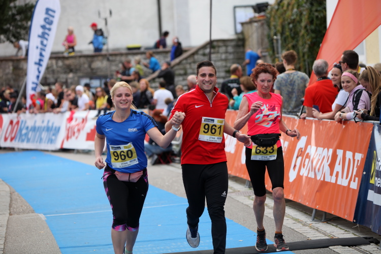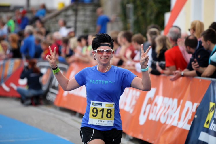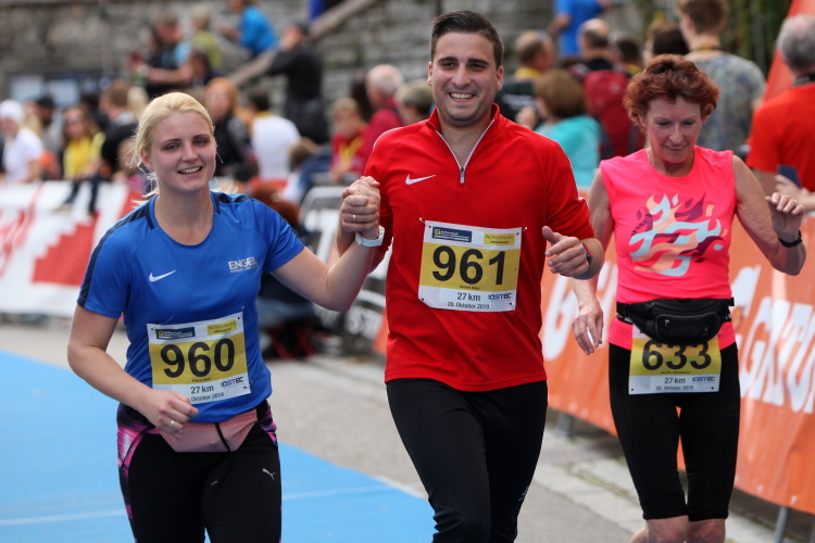 Aber wie immer bei einem Marathon ist auch hier die Erlösung so gewiss wie das Amen in der Kirche. Der Weg über den menschen- und fahnengesäumten Kirchplatz und über den blauen Teppich hinweg dem Zielbogen entgegen ist ein wahrlich eindrückliches Erlebnis und rundet diesen wunderbaren Lauftag in adäquater Weise ab. Irgendwie verstehen kann ich nun, warum es die Veranstaltung schafft, alljährlich so viele Starter neu und auch wieder zu begeistern. Und es bedeutet schon einiges, wenn ich als Marathonläufer sage: Das nächste Mal würde ich den 27er laufen. Denn gerade und vor allem der ist eine richtig „runde Sache“.