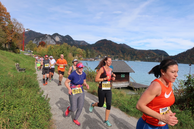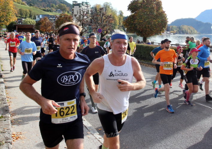 Dass auch heute noch Tausende diesem Ruf folgen, unterstreicht das Renommee der Veranstaltung. Die auf 2.400 Teilnehmer limitierte klassische Distanz über 27 km verläuft mit Start und Ziel in St. Wolfgang einmal komplett um den See herum. Es geht aber mit 5,2 oder 10 km auch kürzer, mit 42,2 km als XL-Version vor allem aber auch länger. Seit 2011 ist man mit der Bezeichnung "Salzkammergutmarathon" in die Marathonliga aufgestiegen, begreift diesen jedoch allenfalls als, wie man heute so schön sagt, Add On für ein spezielles Klientel, was auch die Limitierung der Startplätze auf 300 belegt. Letztlich absolvieren die Marathonis die gleiche Strecke wie die Klassikläufer, nur dürfen bzw. müssen sie sich vorher 15 km auf einem Zusatzkurs, abseits des Sees in Bad Ischl startend, "warmlaufen".