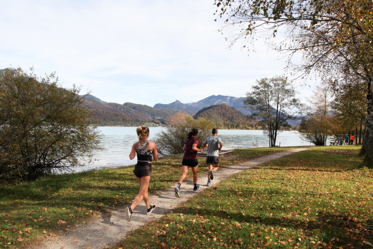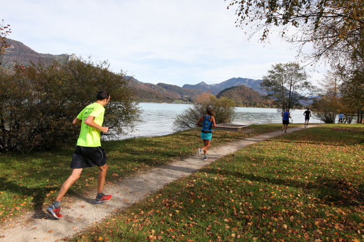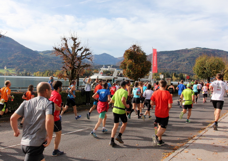 „Klein, aber fein“, so lässt sich das Image des Wolfgangsees auf den Punkt bringen. Gerade einmal 10,3 km lang, aber immerhin bis zu 114 Meter tief ist er, die Ufer mal sanft im Grünen auslaufend, mal felsig steil empor steigend. Seine Form erinnert ein wenig an eine Acht, wobei das namengebende St. Wolfgang mittig über die Schmalstelle herrscht. Die wunderschöne Berglandschaft, in die der See eingebettet liegt, begeistert Urlauber schon seit Generationen. Und von Generationen kann man auch sprechen, wenn man bedenkt, wie lange die Läufer alle Jahre wieder ihre Runde um den See drehen.