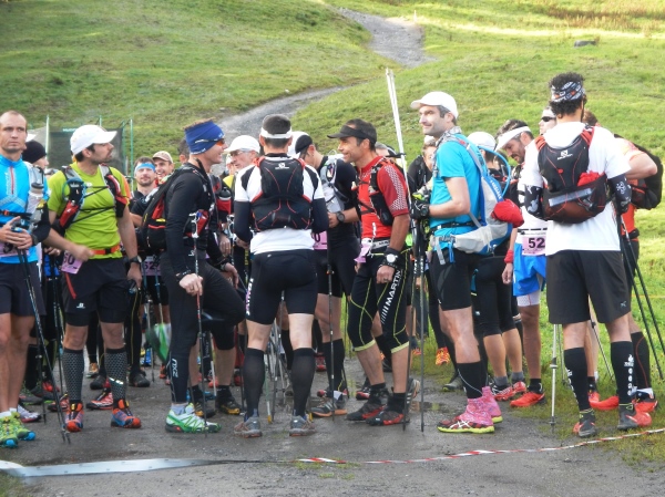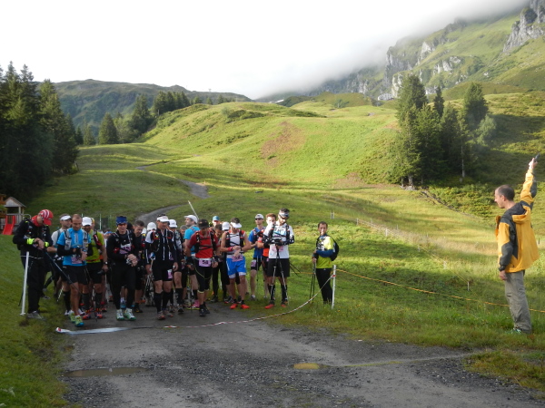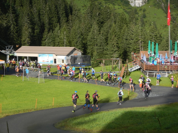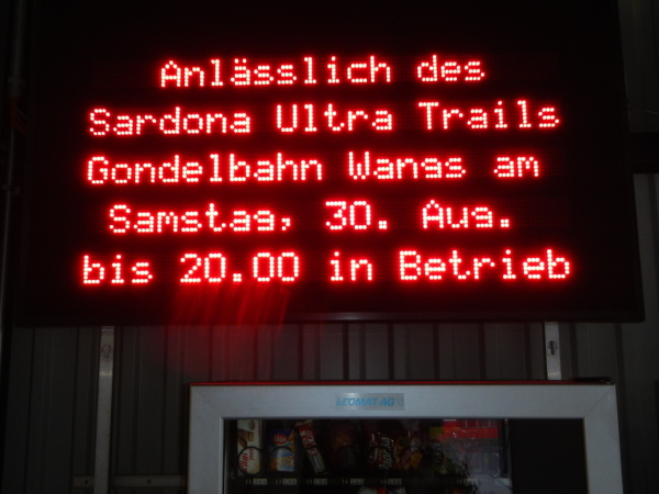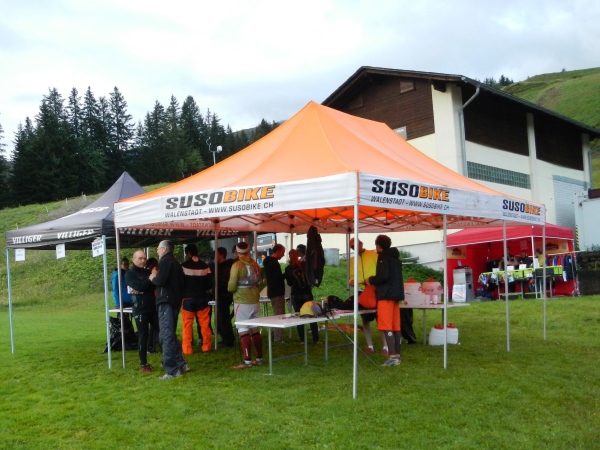 Die Gondelbahn von Wangs nach Furt, einzige Transportmöglichkeit zum Start, macht Frühschicht und bringt auch die Startenden des Fahnenstock Ultra Marathons und des Spitzmeilen X-Treme Trails rechtzeitig zur Materialkontrolle. Obwohl der Pizol Trail Marathon mit mir ¾ Std (und der Gamidaurspitz Halfmarathon 1 ½ Std) später starten, bin ich auch dabei. Schließlich möchte ich die ganz Harten heute auch zu Gesicht bekommen.