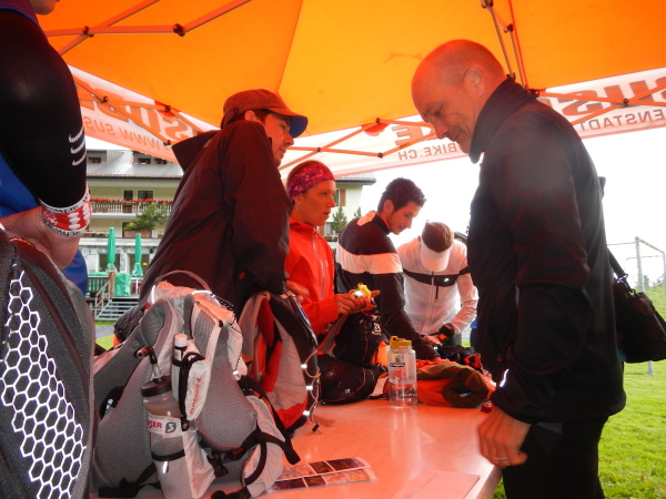 Die Ausrüstungskontrolle hat den Stellenwert, den sie bei verantwortungsbewussten Veranstaltern haben sollte. Minuziös nimmt Guido (Organisator des Rütli Ultras) die Pflichtausrüstung unter die Lupe. Später wird er als Schlussläufer den Halbmarathon laufen. Dass Lionheart mit dem Weidenkorb statt einem Rucksack laufen will ist ein Gerücht.