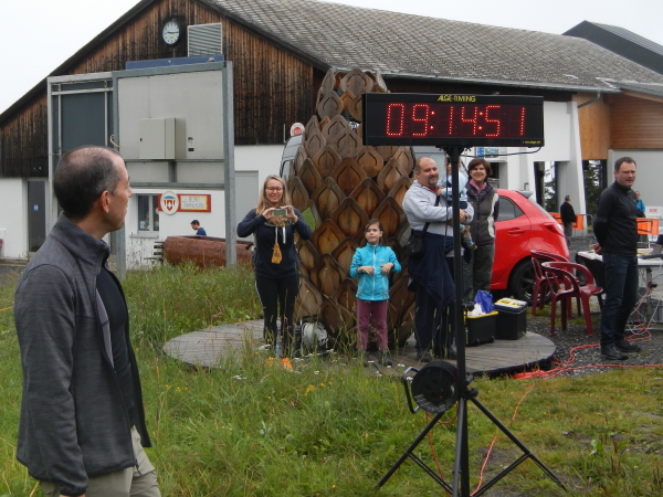 Für die Zeitmessung ist das von Orientierungsläufen bekannte System im Einsatz. Nach der Aktivierung meines Chips habe ich noch Zeit, ein paar Worte mit Ralf zu wechseln, der neuerdings auch auf unserem Portal berichtet. Ohne Bilder, dafür von der Spitze.