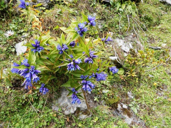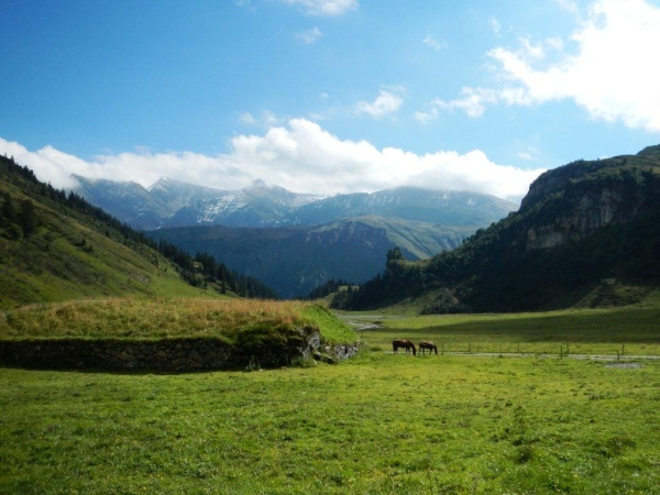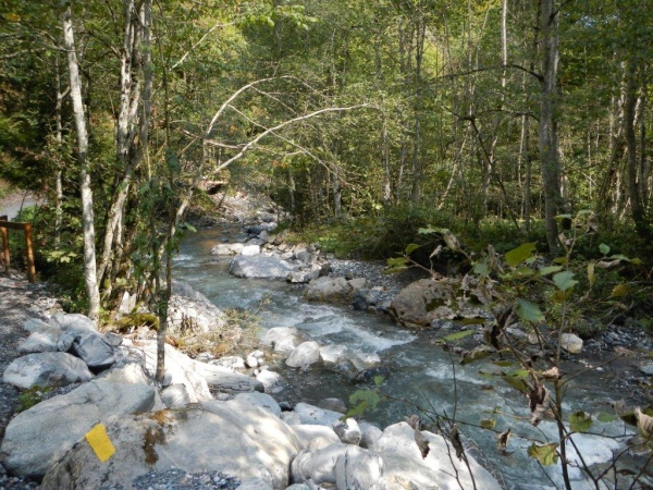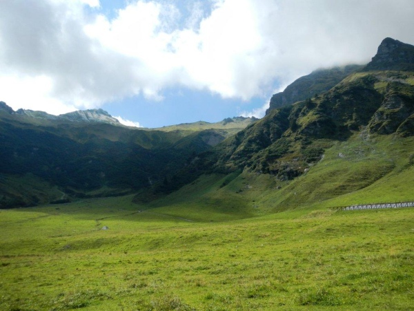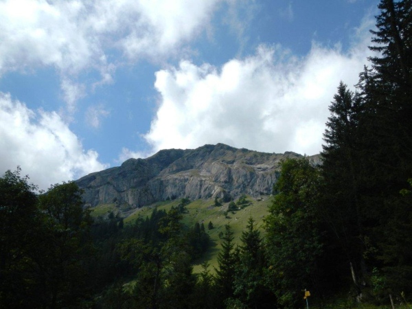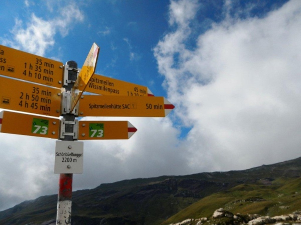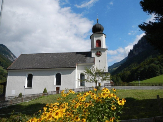 Das Dorf Weisstannen bietet das Bild einer heilen Welt. Ein kleines Schulhaus, die Kirche in makellosem Weiß und heimelige Häuser mit reichem Blumenschmuck. Hier kann man entschleunigt leben. Die auf dem Wanderwegweiser angezeigte Zeit von 6:30 bis zur Spitzmeilenhütte drängt auch mir keine Verschärfung des Tempos auf. Ausgangs Dorf geht es auf einen lauschigen Wanderweg, welcher dem Fluss folgt. Ein Stück geteerte Straße, zusätzlich gepflastert mit den Hinterlassenschaften der muhenden Alpbewohner, unterbricht das angenehme Geläuf nach Vorsiez. Mittlerweile laufe ich mit Otto zusammen und weder er noch ich fühlen uns von den ausgehängten Angeboten des dortigen Restaurants angezogen. Nicht, dass es nicht gut tönen würde; wir fühlen uns beide in bester Verfassung, um ohne Unterbruch den Anstieg zum Wendepunkt in Angriff zu nehmen.