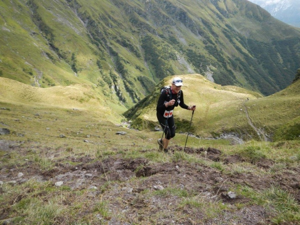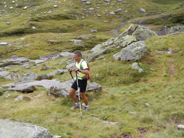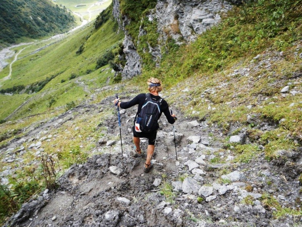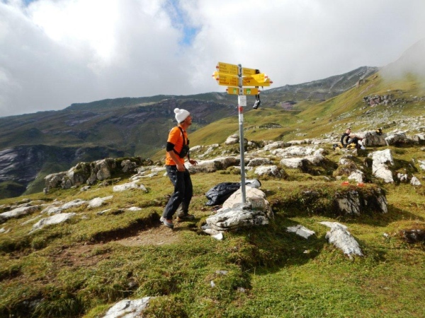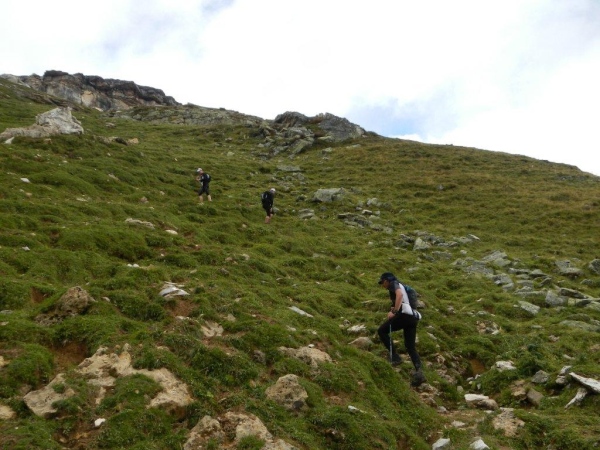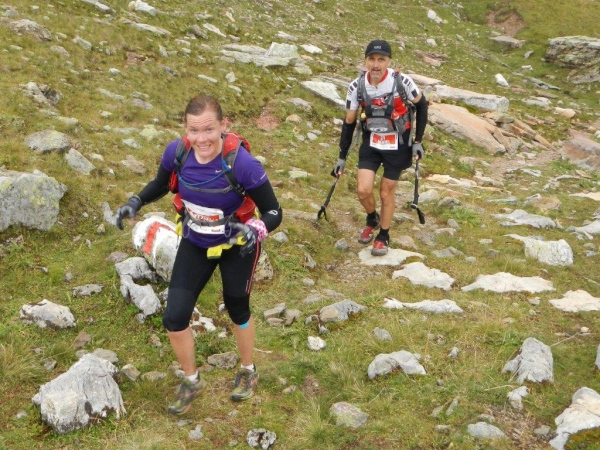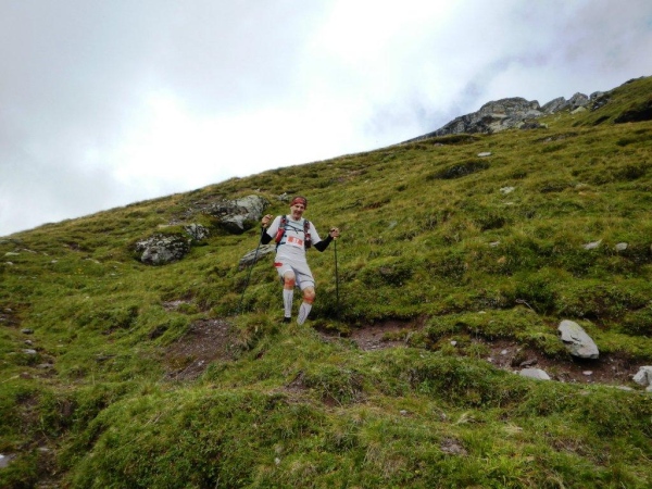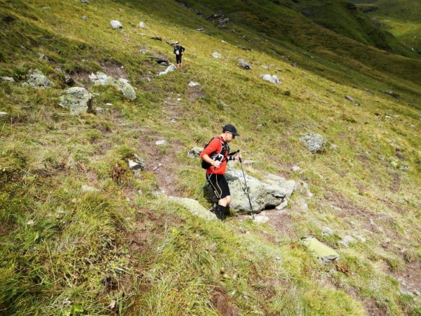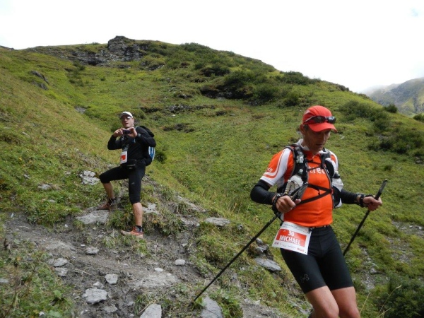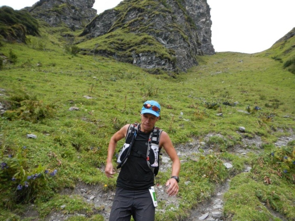Nach dem Chammhüttli ist – nicht weit entfernt aber weit oben – Fansfurggla zu sehen, ein weiterer Kontrollposten. Kurz vorher kommen mir Stephanie, die spätere Drittplatzierte, und Richi entgegen. In Sachen Ultratrail kennt er sich in der Schweiz aus und seine Einschätzung deckt sich mit der anderer Insider: Der Sardona Ultra Trail ist bereits in seiner entschärften Version der härteste unter Seinesgleichen. So viele Höhenmeter auf diese Distanz verteilt können nicht anders als mit einem sehr eindrücklichen Profil gesammelt werden.