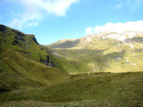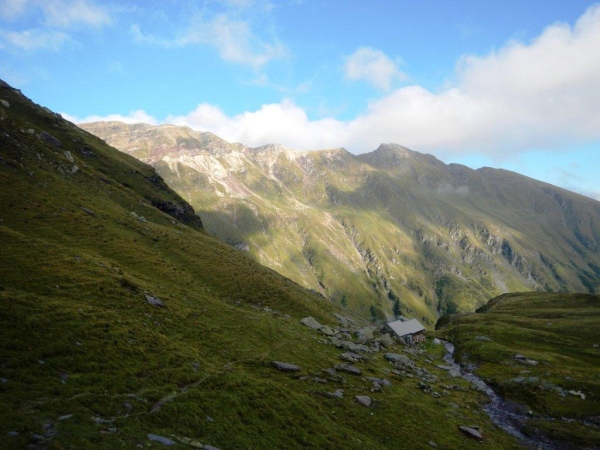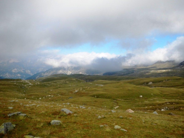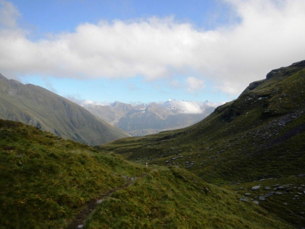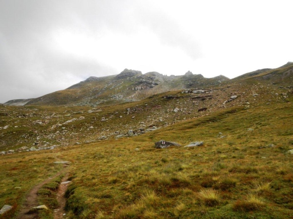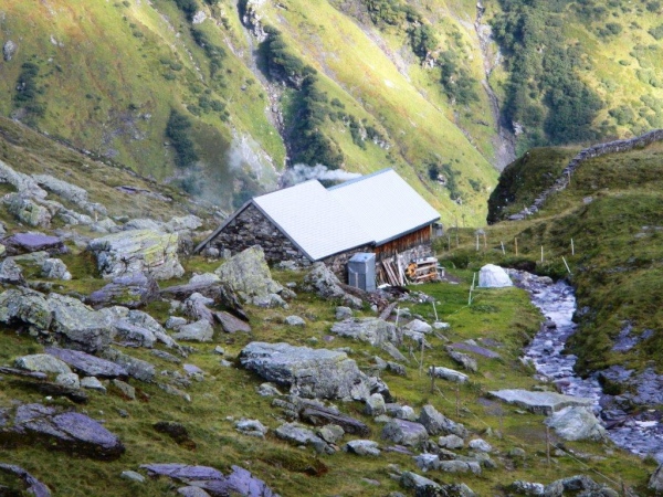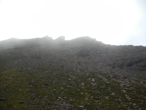 Nach einer ausgiebigen Pause stürme ich wieder los und lasse mich nach einer Weile von einem Irrpfad zu weit nach rechts und oben ziehen. Ein Rufen von der Hütte her weckt meine Aufmerksamkeit und ein Blick zurück zeigt mir die heftigen Bemühungen, welche die Helfer auch mit ihren Armen unternehmen, um mich auf den richtigen Pfad zu bringen. Und mit mir die, welche mir im Vertrauen auf meine Navigationskünste gefolgt sind.